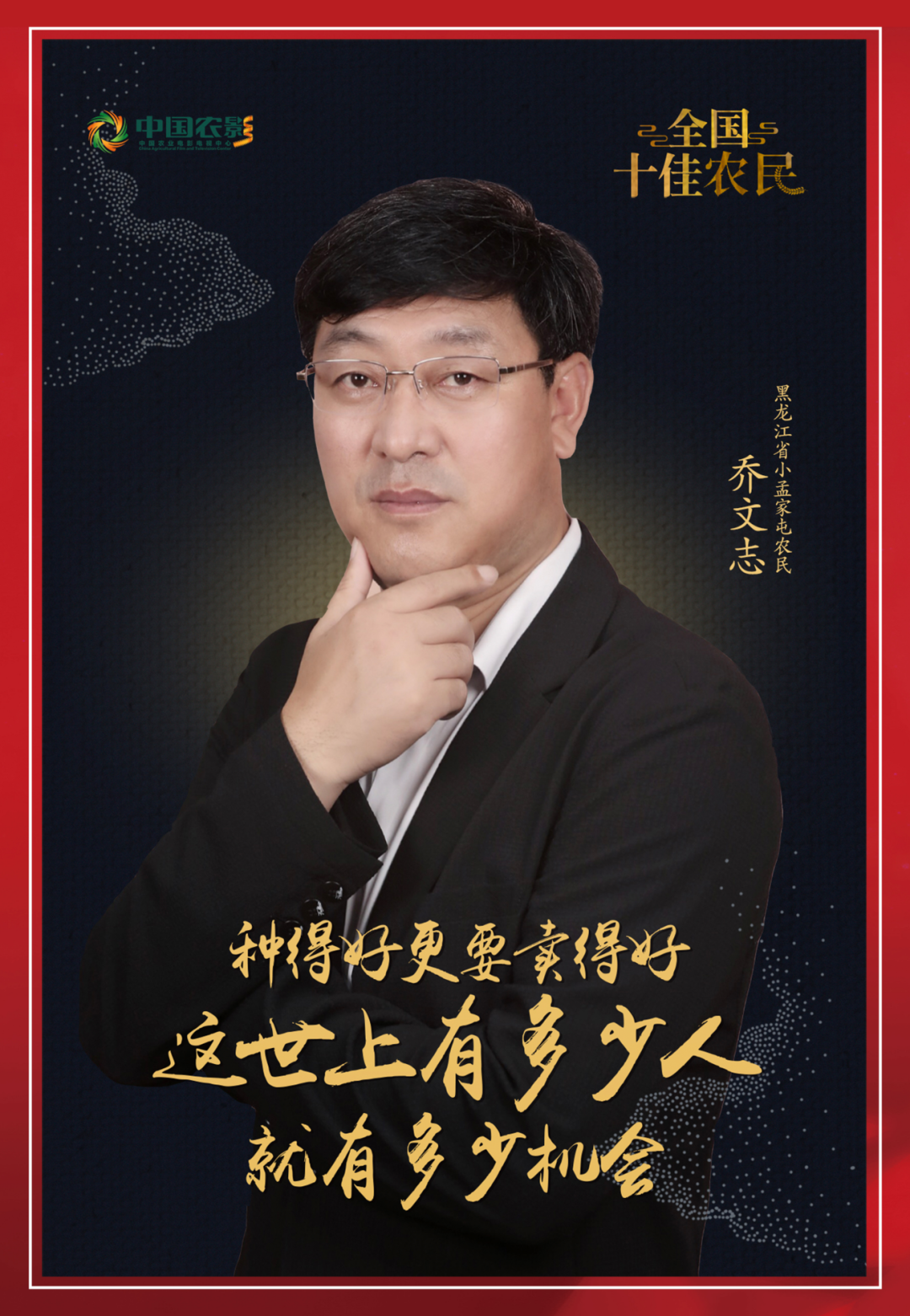 乔文志 男,1973年7月出生,汉族,中共党员,本科学历。黑龙江省五常市杜家镇半截河子村小孟家屯农民,五常市乔府大院农业股份有限公司董事长兼王家屯现代农业农机专业合作社理事长。合作社现有社员2011户,经营面积2.1万亩,农机具280台(套),年加工能力30万吨,仓储能力10万吨,实现集基地建设、科技育种、水稻种植、稻米加工、物流仓储、网络营销、休闲旅游于一体的一二三产融合发展。2019年收入7.86亿元,带动8000余户农民增收。曾获全国农业劳动模范、全国种粮大户等多项荣誉。